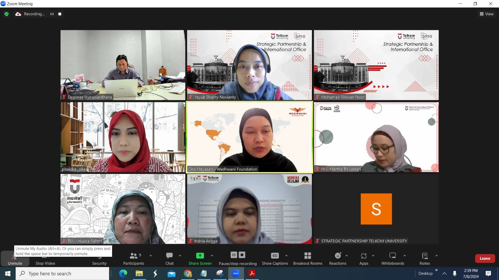 Diskusi Potensi Kerjasama antara Telkom University and Wadhwani Foundation Indonesia pada 8 Juli 2024.