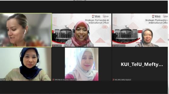 Meeting online antara Telkom University dan American University mengenai pembahasan potensi kolaborasi dan kegiatan yang akan datang. Kerjasama yang dibahas meliputi bidang akademik seperti penelitian, pertukaran pelajar, dan pengembangan program. Kerja sama tersebut dapat memberikan manfaat yang signifikan bagi kedua belah pihak dalam hal pengembangan sumber daya manusia dan peningkatan mutu pendidikan. (7 Juli 2023)